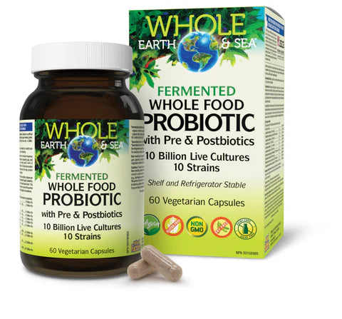 Whole Earth & Sea Fermented Whole Food Probiotic with Pre & Postbiotics, 10 Billion live Cultures, 10 strains, 60 capsules