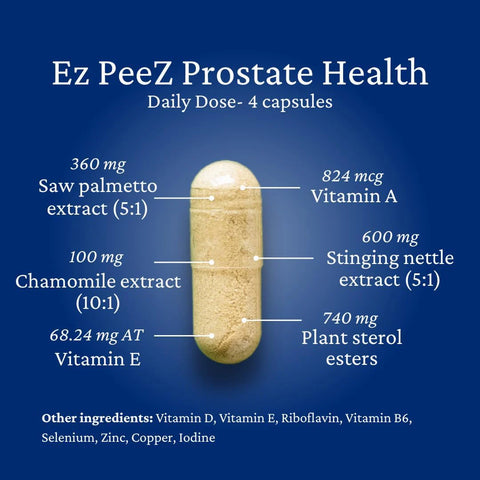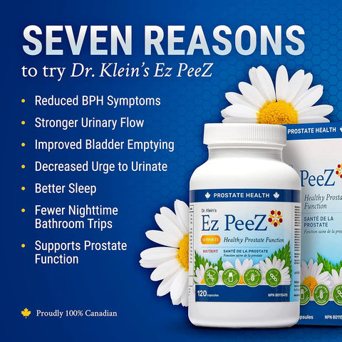 Dr. Klein's Ez PeeZ Prostate Health contains antioxidants and other supportive vitamins and minerals that maintain immune, hormonal and prostate health.